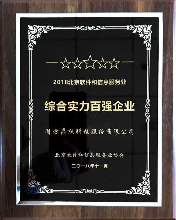 本次百強企業評選活動參照《財富》“世界500強”和《福布斯》“全球企業2000強”的評比規則,以企業規模、效益及研發創新3個方面數據進行量化計算,輔以市場開拓能力、社會責任貢獻等進行綜合評價,確定北京軟件實力百強企業名單。經過專家組的評審最終同方鼎欣成功入選2018北京軟件和信息服務綜合實力百強企業。