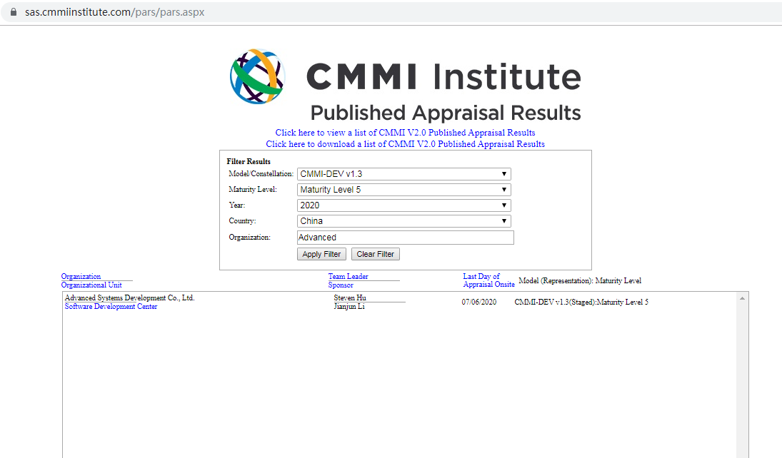 CMMI,即軟件能力成熟度模型集成,是衡量軟件企業能力成熟度和項目管理水平的最高權威標準,被公認為軟件企業走向國際市場的通行證,評估標準與過程極其嚴格。CMMI認證共分為5個階梯式上升等級,其中CMMI5級是目前國際軟件行業對管理成熟度要求最高、申請難度最大、認證級別最高的評估。據官方數據顯示,截至到今年6月,全球通過CMMI認證的企業中僅有12.5%左右達到5級認證,能否通過CMMI認證成為業內衡量軟件企業工程開發能力的重要標志之一。