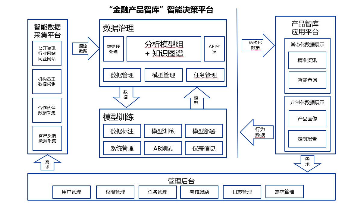 該解決方案依靠自主可控的AI中臺底層支撐、行業領先的NLP技術優勢、學術共創的模型算法,提供基于深度學習、知識圖譜、NLP三大技術為核心支撐的金融業務創新工具。通過對諸如網絡資訊信息、機構員工數據、客戶反饋數據等海量原始數據進行智能采集后進行數據轉換、抽取及解析,實現核心數據結構化輸出,形成具有實際使用價值的智能分析結果,可以提供金融數據態勢感知平臺、金融場景知識圖譜方案等金融場景數據智能化服務,如:基于NLP技術,獲取行業資訊,構建價值客戶畫像,助力金融機構獲客;通過數據智能抽取和分析提供金融競品的交互體驗報告;實時全網獲取企業風險資訊,形成智能化企業風險畫像等。