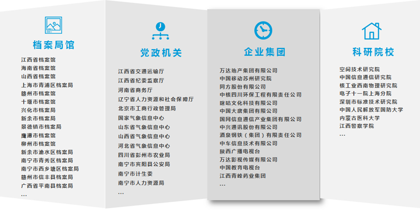 作為根植于信息產業領域的高端IT解決方案提供商,同方鼎欣在數字檔案領域擁有多年深耕經驗,公司始終將提升檔案管理水平、促進國產化自主生態建設作為核心技術發展方向,堅持在符合規定的情況下,為客戶提供更全面的信息化服務。并在與江西省檔案館、上海青浦檔案局、萬達集團、同方股份、中核環保等客戶的全面合作中得到實踐運用與優化升級,為其量身打造了以數字資源為基礎、安全管理為保障、遠程利用為目標的全新數字檔案管理系統。先后助力上海青浦區檔案局以地市級最高分通過國家數字示范檔案館測評;助力萬達集團檔案部門利用黨史檔案資源打造的“延安紅街”品牌項目,作為唯一一家非公有制企業入選國家檔案局五大慶祝建黨百年特別案例;助力江西省檔案館高分通過“全國示范數字檔案館”系統測試,成為全國第5家通過測試的省級國家綜合檔案館。