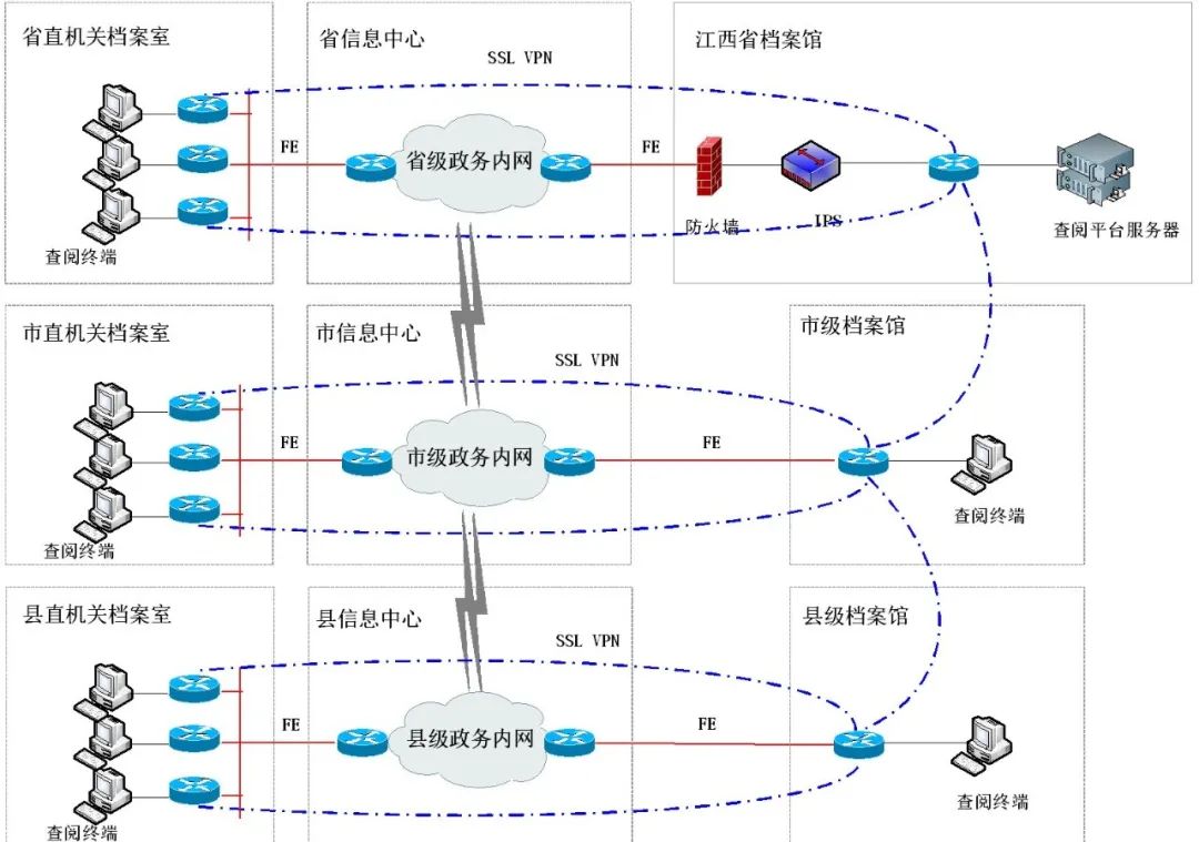 江西檔案共享利用平臺的建設始于2012年,本平臺的建設是為了聯通各級國家綜合檔案館及其同級立檔單位,并將省檔案館檔案資料查閱平臺部署其上,供各市、縣檔案局(館)使用,實現了數字檔案資源的異地備份和集中共享,開展館際之間、館室之間的查檔指引服務。目前已開通江西省全部11個設區市、44個縣級檔案館以及21家省直機關連通并登錄查閱平臺,支撐起了全省省、市、縣三級綜合檔案館的基本業務,可實現各門類檔案數字資源的收、管、存、用和遠程出證。截止目前該平臺共存儲備份了三級綜合檔案館目錄數據4004萬條、紙質檔案數字副本3180余萬件。目前本平臺已實現與“贛服通”的對接,并可向電子證照系統推送檔案證明件。2022年,本平臺高分通過了國家檔案局組織的“全國示范數字檔案館”系統測試,成為了全國第5家通過測試的省級國家綜合檔案館。