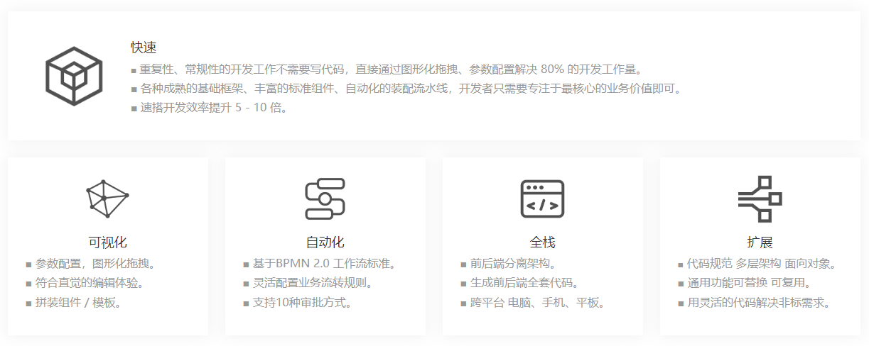同方鼎欣低代碼平臺是由同??欣?研,?向開發者推出的可?主搭建、靈活定制、?效復?的企業數字化創新引擎。平臺擁有?主研發的表單?成器、?作流引擎,開發者?需撰寫代碼,直接通過圖形拖拽、參數配置,實現軟件基礎功能和框架的快速搭建。提供成熟的系統框架、標準組件、?動化的裝配流?線,幫助開發者專注于核?業務,助?企業快速構建數字化應?。