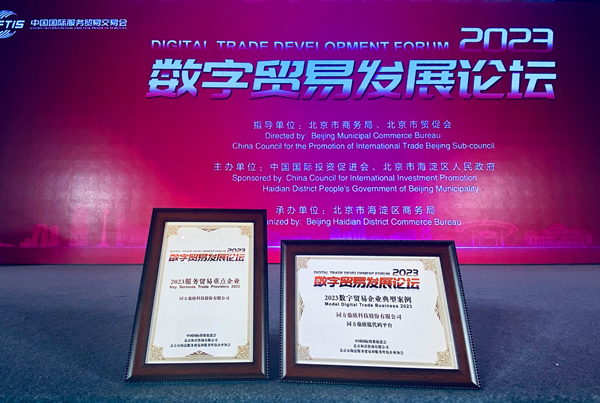 2023年9月6日,在中國國際服務貿易交易會上,由中國國際投資促進會、北京市海淀區人民政府主辦,北京市海淀區商務局承辦的2023數字貿易發展論壇在北京國家會議中心成功舉辦。同方鼎欣作為我國數字貿易領域知名企業受邀出席本屆大會,并再度獲評入選“2023服務貿易重點企業”和“2023數字貿易典型案例”推介名單。