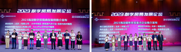 作為中國國際服務貿易交易會的重要分論壇之一,數字貿易發展論壇自2013年首次舉辦以來,一直秉持國際化、專業化和平臺化的辦會宗旨,著重于打通上下游產業資源對接,推進產業鏈協同發展,在跨國界、跨行業項目對接方面的平臺效果明顯。為進一步鼓勵和支持海淀服務貿易企業參與國際競爭,擴大出口,促進“一帶一路”國家的合作,在本屆“2023數字貿易發展論壇”上發布了“2023服務貿易重點企業”和“2023數字貿易典型案例”推介名單。