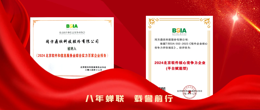 近日,北京軟件和信息服務(wù)業(yè)協(xié)會(huì)(以下簡(jiǎn)稱“北京軟協(xié)”)第十一屆會(huì)員代表大會(huì)第二次會(huì)議暨第十一屆理事會(huì)第二次會(huì)議在北京召開(kāi)。會(huì)上發(fā)布了《2024北京軟件和信息服務(wù)企業(yè)綜合實(shí)力報(bào)告》和《2024北京軟件企業(yè)核心競(jìng)爭(zhēng)力評(píng)價(jià)報(bào)告》,作為蟬聯(lián)8屆百?gòu)?qiáng)企業(yè)公司,鼎欣科技再度入選“2024北京軟件和信息技術(shù)服務(wù)業(yè)綜合實(shí)力前百家企業(yè)”及“2024北京軟件核心競(jìng)爭(zhēng)力企業(yè)”名單。