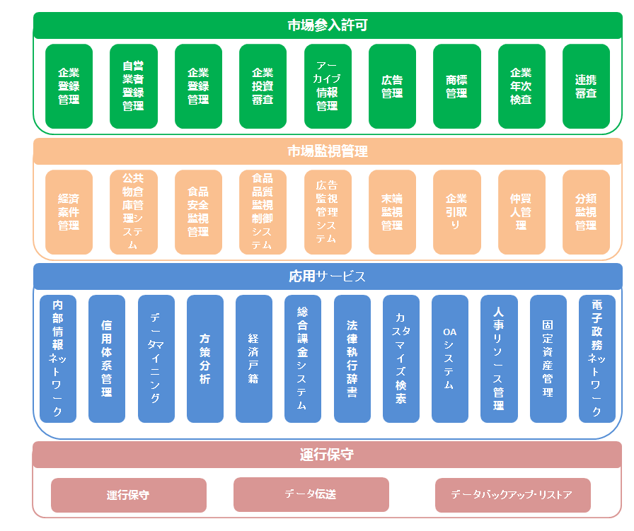 將來、中國(guó)電子政務(wù)は「統(tǒng)合、協(xié)同、連攜、共有、再構(gòu)築」で纏められます。統(tǒng)合は既存の政務(wù)システムを行政管理體制革新の進(jìn)行に連れて、大規(guī)模の統(tǒng)合を行います。協(xié)同は機(jī)関を跨いで共同的に業(yè)務(wù)を行います。連攜は縦割り構(gòu)成で情報(bào)サイロとなった問題を解決して、連攜を?qū)g現(xiàn)します。共有は統(tǒng)合、協(xié)同、連攜の上で、リソースの共有レベルをアップします。再構(gòu)築は政府組織體系の調(diào)整に従って、大きな総合応用プロジェクトを再構(gòu)築します。政府機(jī)関の業(yè)務(wù)形態(tài)から見ると、電子政務(wù)は主に下記の3つの応用分野があります。