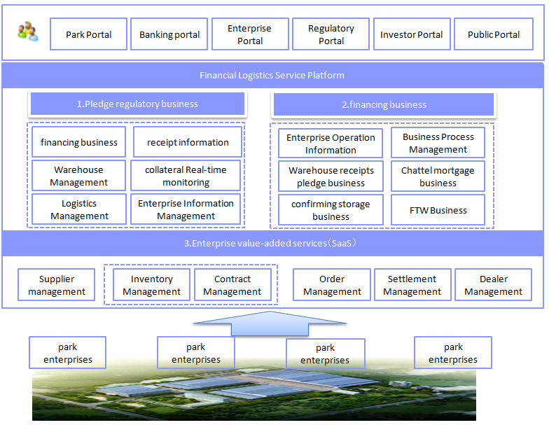 The platform, with financial institutions, trade and manufacturing enterprises, supervision enterprises, insurance assessment institutions and so on, created a one-stop comprehensive service platform with a set of "financial services, logistics services, supervision service, and information service".In the supply chain, commercial manufacturing enterprises makes raw materials or finished goods as collateral in the platform, and then pledges tangible the product or materials to financial institutions for financing, the process under the supervision of third party Logistics Company.After audited the enterprise financing off-line, financial institutes make approvals of financing application online within the platform, real-time viewing collateral inventory, dynamically adjusting the price of collateral and informing regulatory information by SMS. Supervision enterprises manage the collateral inventory list through the platform, checking the collateral warehouse by the real-time monitoring and tracking the trend of collateral price.Logistics finance service platform creates a new business space of crossing industry and intercross development, solves the problem of revolving capital for small and medium-sized dealers, improves the financial institutions fund utilization rate, and expands the new market of logistics enterprises.