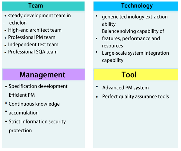 Stable team Standard management Advance tools Innovative technology