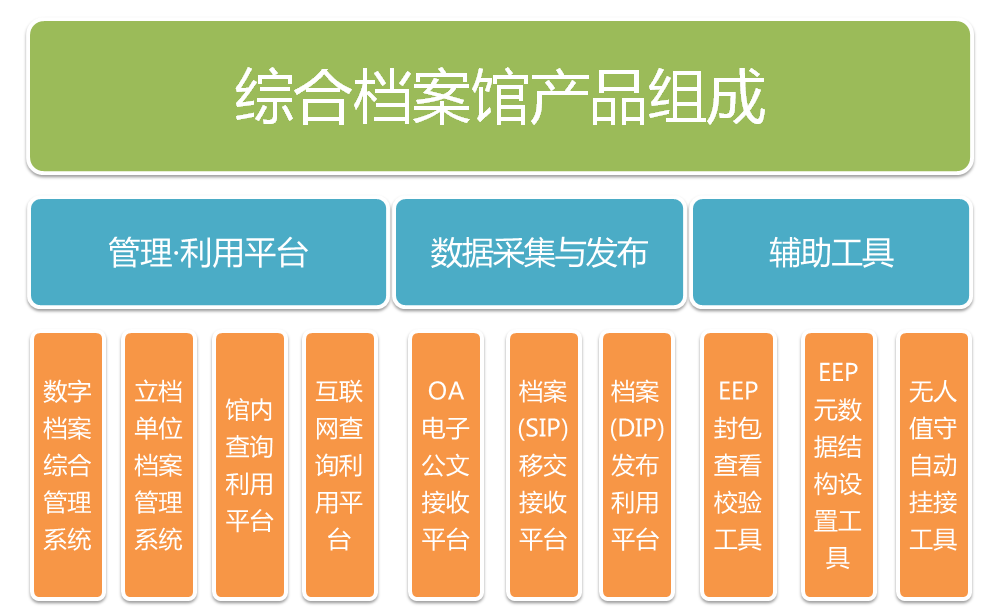 對上級檔案館開放的數據接口可支持的電子數據的平滑移交;對外通過利用發布模塊向政府和公眾提供網絡查詢、借閱,政務公開,愛國主義教育等信息化服務;對下級支持接收平臺,支持閉環、平滑、安全的接收下級立檔單位移交的電子檔案。